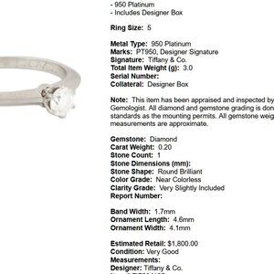 $2000 Authentic Tiffany & Co. Diamond Solitaire Engagement Ring in Platinum