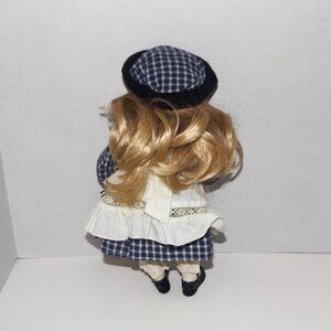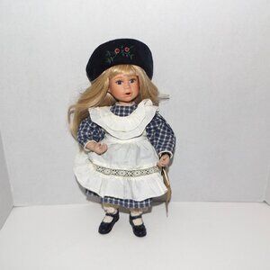 Boyds 2000 Yesterday’s Child 12” Doll in original box with hang tag. 2000. Porcelain head, lower arms and lower legs. Hand painted, detailed facial features and skin tones. Blonde hair, blue eyes. Dressed in gingham plaid dress, off-white apron, and hat. Mint condition - From a collector’s estate – displayed only. Doll is missing toy mouse. Doll does not stand on its own. See pictures as part of description.