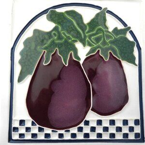 2000 hand glazed tile by Cindy Wallace. Ceramic tile wall decor for kitchen or patio. Veggie design of eggplant. Excellent condition. No chips, no cracks. 6.75"X7.25". Promote healthy eating through decor.