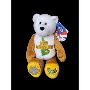 Add a piece of New Hampshire to your collection with this 2000 Limited Treasures New Hampshire State Quarter Coin Bean Bear Plush. Featuring the iconic New Hampshire state quarter, this adorable bear is perfect for collectors or anyone who appreciates the beauty and history of the Granite State.