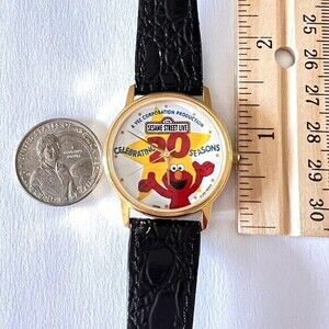 A lovely Sesame Street Live 20th anniversary watch from 2000, featuring Elmo. The crystal is clear and free of scratches. The watch band is in very good condition, with light wear. The watch runs well and keeps time. The battery was changed. Would make a wonderful addition to any Sesame Street or Muppets collection!