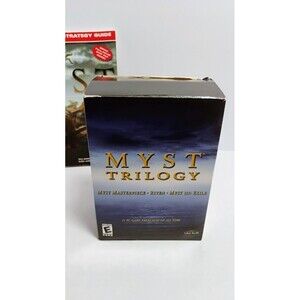 LOT CONTAINS ORIGINAL MYST WITH PRIMA STRATEGY GUIDE AND THE TRILOGY BOX SET RELEASED BY UBISOFT THAT HAS MYST MASTERPIECE EDITION, RIVEN, AND MYST 3 EXILE. ALL DISCS ARE COMPLETE WITH MANUALS AND IN GOOD SHAPE. THE GUIDE IS MISSING ORIGINAL COLOR MAPS THAT CAME WITH IT. MYST 3 IS SEALED IN ORIGINAL FACTORY WRAP