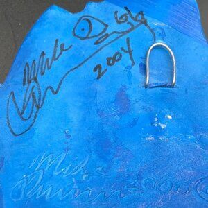 Add a unique touch to your home decor with this vintage Mike Quinn Buzz Fish with Attitude wall art sculpture. Handmade with hydrostone plaster, this figurine showcases a fish of the year 2000, signed by the artist himself in 2004. The item weighs 1lb 12.7oz and is perfect for collectors who appreciate unique and one-of-a-kind pieces. The fish sculpture is suitable for animal and marine lovers and is a great addition to any collection.