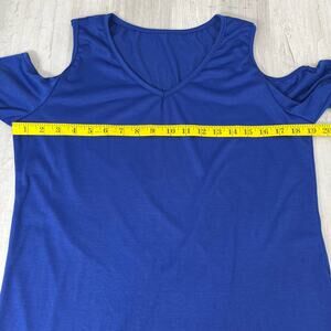 2000s Blue Bell Sleeve Cold Shoulder V Neck Flowy Long Sleeve Shirt Small