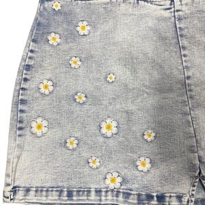Wild Fable Target mini skirt in a 90s or Y2k style. Stretch denim skirt with a slight acid wash and embroidered sunflowers on the side. Theres also a small side slit. Zippered back closure. Really cute! In great condition. Size womens small.