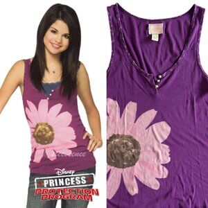 2000s Flower Henley Tank as seen on Carter Mason (Selena Gomez) in Disney's Princess Protection Program (2009). You might also recognize the top from Wizards of Waverly Place season 2 because it was worn by Isabella, Justin's werewolf girlfriend. Screen accurate, not screen worn. 100% cotton.