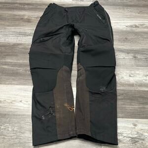 body armor pants, Black brown colorway multiple zippered pockets belt loop relaxed fit mesh lined water proof riding over pant, double knee, biker motorcycle gear road warrior utilitarian grunge rebellious moto gear 2009.