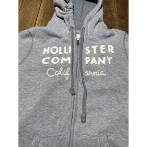 2000s Hollister Light Grey Full Zip Hoodie Womens Medium EUC Embroidered Logo