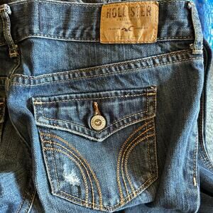2000s Hollister Low Rise Cali Flare Jeans 28" Waist Flap Back Pockets Distressed