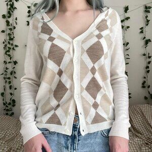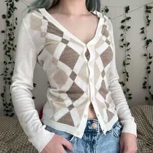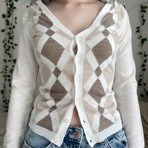 argyle cardigan, coquette, gossip girl core, balletcore, light academia, y2k preppy, bratz academia, vintage knit, button up sweater, fall fit check