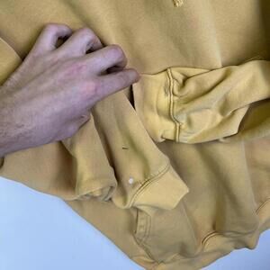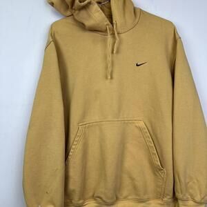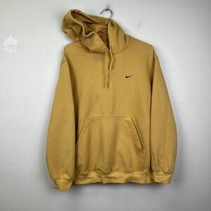 Stay cozy and stylish with this Nike pullover hoodie in a soft yellow hue. Perfect for casual outings or lounging at home, this hoodie features: - Iconic Nike logo on the chest - Comfortable kangaroo pocket for warmth - Adjustable drawstring hood - Ribbed cuffs and hem for a snug fit - Ideal for layering or wearing solo - Made from soft, durable cotton blend. A stylish addition to your wardrobe that combines functionality and classic sportswear aesthetics.