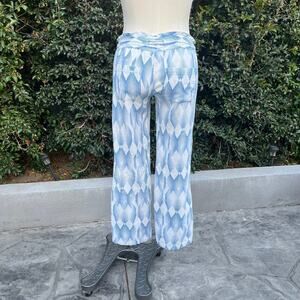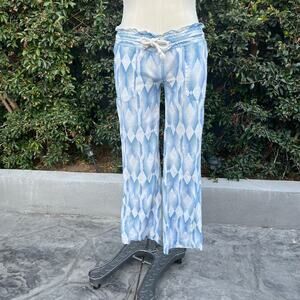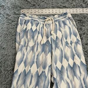 2000s Roxy Low Rise Drawstring Beach Surfer Geometric Wide Leg Pants Linen