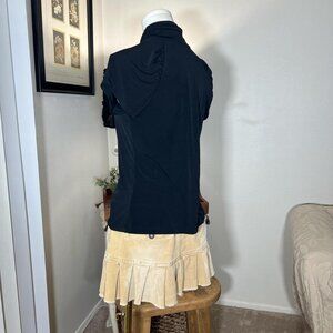 Y2K mock neck ruffle fitted stretchy top.