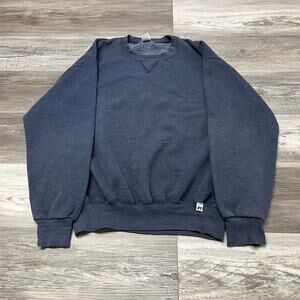 2000s Russell Athletic Dark Blue Mens L Tall Blank Pullover Crewneck Sweatshirt