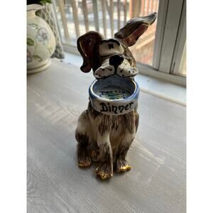 2000s Signed Whimsical Heather Goldminc Dog Dinner Time Votive Candle Holder - Dog pottery figures, Trendy Home Accent, Dog Lover gifts