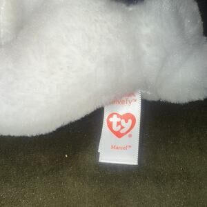 Vintage 2000s TY Beanie Baby Marcel — a soft, black and white dog plush with sewn-in tag only. This adorable collectible is in excellent used condition, perfect for Beanie Baby collectors or fans of nostalgic plush toys. No swing tag included. A classic piece from the beloved Beanie Baby line, Marcel makes a great gift or addition to any plush collection.