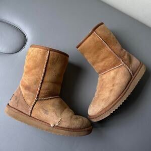 2000s Womens UGG Classics AUSTRALIA SHORT Brown Tan Chestnut Winter Fur Lined Boots