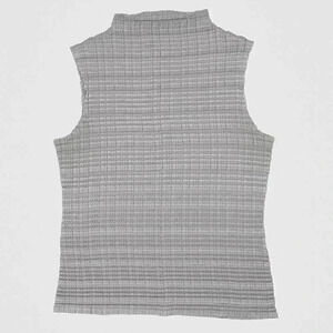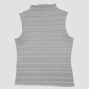 2000s vintage silver gray brutalist sleeveless tank top in a size medium. Popcorn structural fabric. Seamless mock neckline with a wide shoulder. Stretches beautifully to the body. This a very easy and sexy top to slip on after tanning in the South of France.