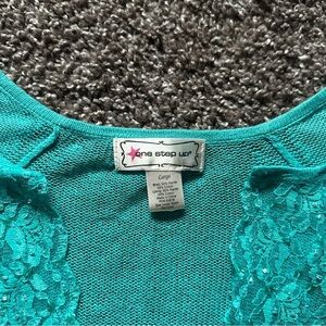 2000s Y2K One Step Up Teal Lace Two Piece Cami & Sweater Set Size L