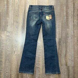2000s Y2k Southpole Low Rise Flare Jeans Distressed Camo Patch Womens Size 3/29