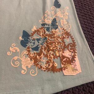 2000s butterfly fairy bow kids top. It is a kids top but would fit an adult (use measurements). Has some wear and imperfections but overall still in great condition. Size L (10/12).