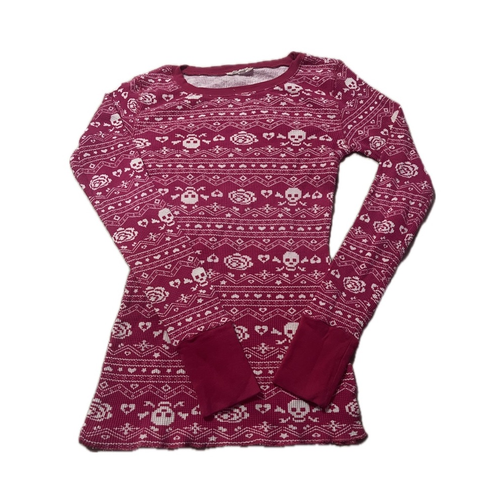 Pink & white skull long sleeve shirt #2000s #Y2K