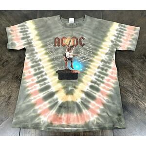 2001 AC/DC Stiff Upper Lip Tour Concert Band T Shirt Double Sided Tie Dye Men's L. T-shirt is in good pre owned condition, there are some spots / stains on the shirt but overall in good shape. Please see all pictures and measurements.