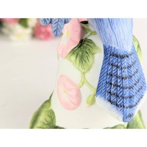 2001 Avon Collectible Bisque Porcelain Blue Jay on Flower Bell Figurine Vintage