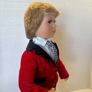 Introducing a beautiful 2001 porcelain and cloth doll named Elizabeth. This doll is part of the limited edition Boyds Bear collection called Yesterdays’ Children. Standing at 15 inches she is a must have for any collector. Along with her cute outfit she also comes with her best friends Lockslea and Curry . She also comes with a stand, hat, and certificate of authenticity. She comes signed and numbered 2086/12000. She comes with the outer box as well. The outer box might be slightly damaged as shown in pictures. Boyds Bears are no longer being produced.