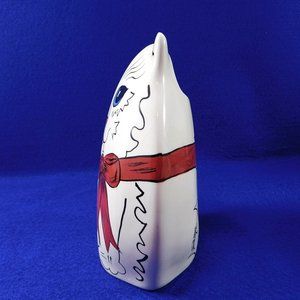 2001 Cats By Nina Lyman 7" Ceramic Vase Fluffy White Cat Blue Eyes Red Bow 6.75"