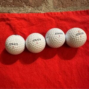 4 sleeves 3 balls in each sleeve. Balls Made by Strata Tour professinal. See photos for interesting golf information. Rare find!