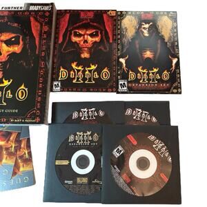 This vintage big box 2001 "Diablo II Battle Chest" computer game, expansion set, and official strategy guide is in GOOD previously used condition. Please be aware, the game is sold untested. The corners of the cardboard big box have wear on the front, back, sides, edges, and corners from storage and previous use (see photos)