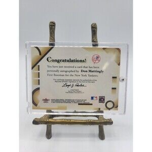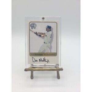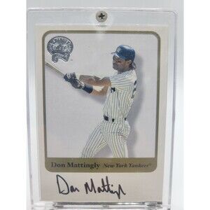 The 2001 Fleer Greats of the Game Don Mattingly autographed trading card is a vintage collectible featuring the legendary New York Yankees player. This hard-signed card, manufactured by Fleer, is a valuable addition to any baseball card collection. The card, part of the Autographs insert set, showcases Mattingly's signature and is authenticated by Fleer. A must-have for fans of the MLB World Series and Major League Baseball, this unique card is a piece of sports history from the United States.