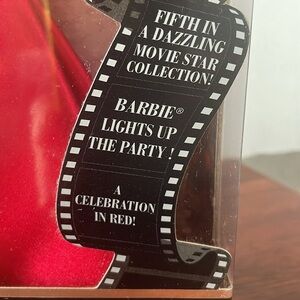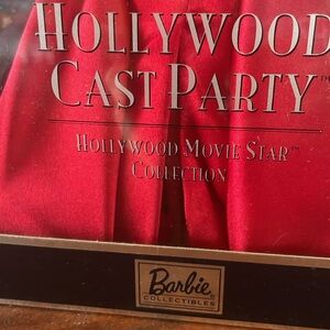 2001 Hollywood Cast Party Barbie NIB 5th in Series. Box has an indentation. It's a wrap! The filming of her latest movie is over and Barbie and cast are ready to party. Always, adding extraordinary beauty and charm to any celebration, Barbie remains true to her glamourous movie-star image in her red charmeuse gown with matching red belt and golden buckle. Red gloves and a red marabou shrug embellished with golden threads further enhance the romantic appeal of her totally gorgeous look. Elegant gold-tone heels tell us she's ready to dance the night away until work on her next picture begins. Comes with stand and Certificate of Authenticity.