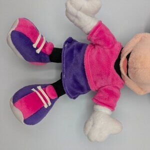 This 10" Minnie Mouse plush from Mattel Fisher Price (2001) features a charming pink and purple outfit. Soft, adorable, and perfect for collectors. Used in good condition. Some discoloration on foot as shown in photos.