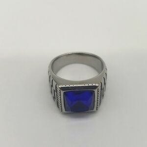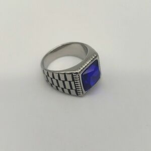 2001- Royal Blue Cubic Zirconia Handmade Men's Ring Size 9 NWT