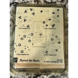 2001 STAMPIN UP BEYOND THE BASICS SET OF 4 WOOD MOUNT RUBBER STAMPS EUC.