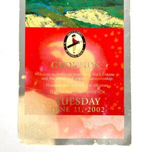 Experience golf history with this June 11, 2002 Tuesday 102nd US Open PGA Golf Championship Grounds GR Admission Ticket Stub Badge Tag Souvenir. A unique collectible from the famed Bethpage State Park, Black Course, when Tiger Woods won the tournament.