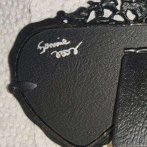 Selling a Local NY Artist made table top picture frame that features a distressed Black and Gold paint, Two heart picture frames made into one; with beautiful rose accents.