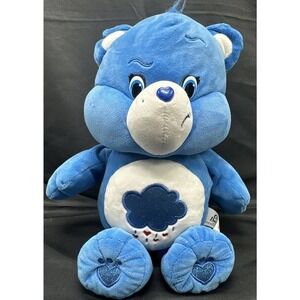 This is a rare and vintage 2002 Care Bears Grumpy Bear plush toy, standing at 12 inches tall. With blue fur and a rain cloud on its belly, this lovable character is perfect for all occasions and for collectors of the franchise.