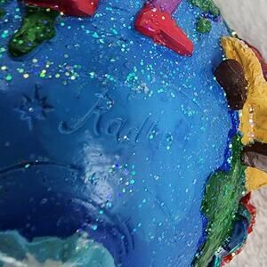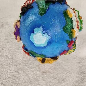 - Features the World with Santa's from several countries clasping hands. Topped with a fairy tale castle. Hand painted with glitter details