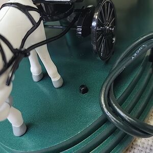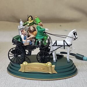 The 2002 Hallmark Keepsake Ornament Wizard Of Oz Horse Of A Different Color is a collectible ornament from the Wizard of Oz collection. This ornament features a unique design inspired by the horse that changes color in the classic film. It is a part of the Hallmark Ornaments collection and was manufactured in 2002. The carriage lamps glow and the horse changes color. The driver speaks when you press the button on the base.