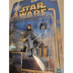 This 2002 Hasbro Star Wars action figure features Boba Fett from Star Wars: Episode II – Attack of the Clones. The character is made of plastic and has a 1:18 scale, making it a great addition to any Star Wars collection. The figure is part of The Clone Wars series and is an original licensed reproduction.