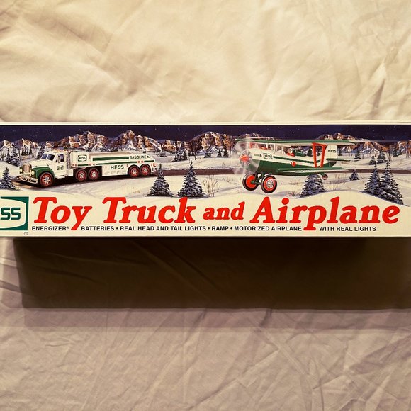 This 2002 Hess Truck and Airplane set is a must-have for any collectors out there. The set comes in its original unopened box, ensuring its authenticity. This item features a gas and oil theme, making it a great addition to any collection. It was created in 2002 by the Hess brand, a name that is well-known in the industry. This set is an original piece and has never been reproduced. Don't miss out on the chance to add this amazing collectible to your collection!