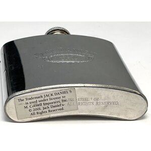 2002 JACK DANIELS Whiskey 7oz Stainless Steel Etched Logo Pocket HIP FLASK HTF