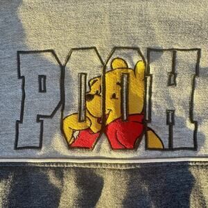 2002 Pooh 100 Acre Collection Two Toned Grey Embroidered POOH Varsity Crewneck