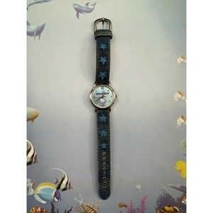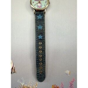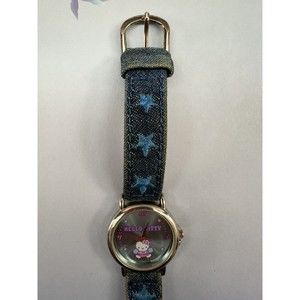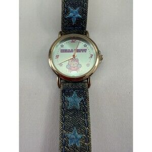 2002 Sanrio 76 02 Hello Kitty Watch Jean Denim Band. Works! HK207 012 PC21