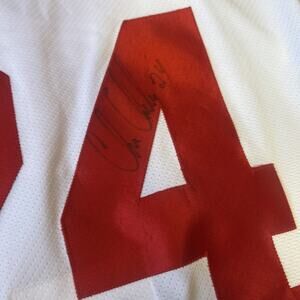 Is sign in the back I can guarantee been authentic but I been comparing it to authentic signatures and It look legit, but the jerseys has stains that will come out I don’t want to wash it and ruin the signatures
