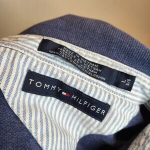 2002 Tommy Hilfiger Large Mens Polo Shirt Navy Blue Cotton