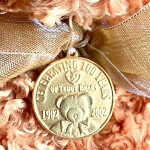This plush bear was made to celebrate the 100th year anniversary of the teddy bear. He has made in a vintage style, and wears a sheer gold ribbon with a commemorative gold coin. I also have the Beanie Baby version of this bear. Teddybearsary measures approx. 15" tall; he is full-sized plush teddy bear.